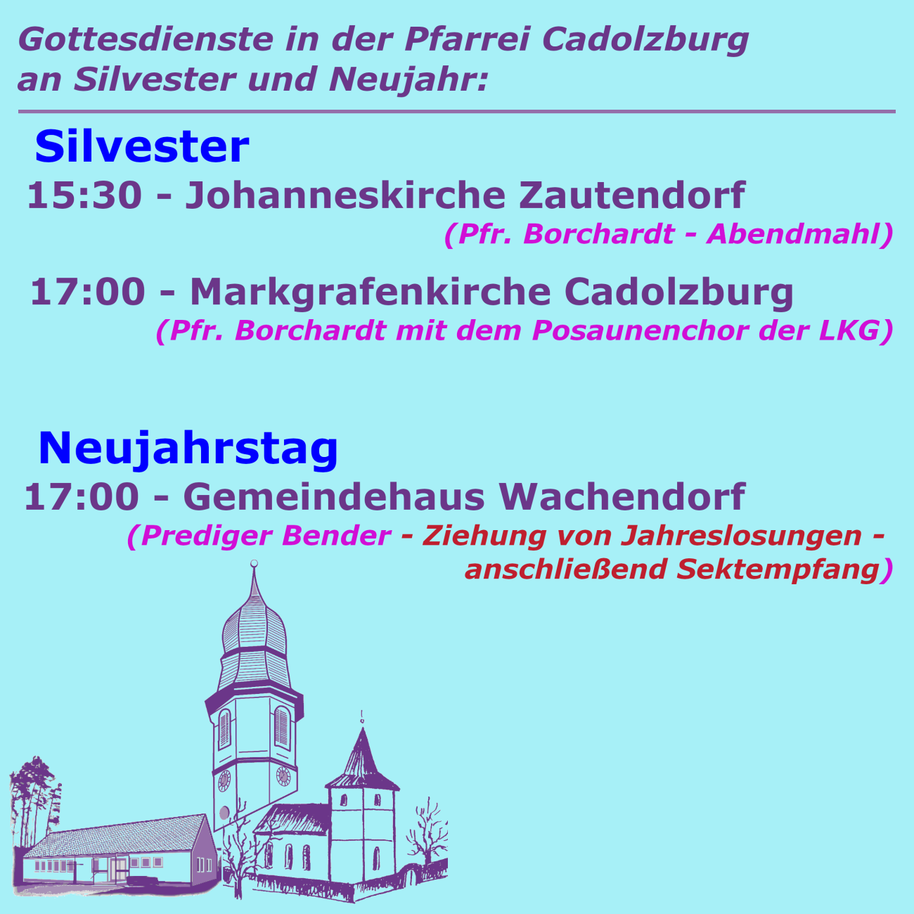 - Gottesdienste der gesamten Pfarrei Cadolzburg-Zautendorf oder nur die Gottesdienste in der Markgrafenkirche, im Gemeindehaus Wachendorf oder in der Johanneskirche Zautendorf