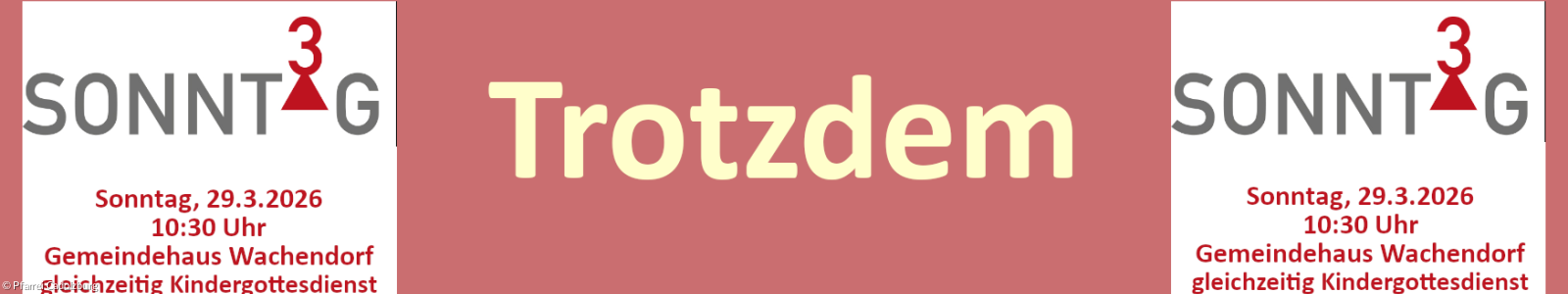 Herzliche Einladung zu unserem SonntagHoch3-Gottesdienst (music - message - miteinander) mit dem Titel "Trotzdem" am Sonntag, 29. März 2026, um 10:30 Uhr im Gemeindehaus Wachendorf!