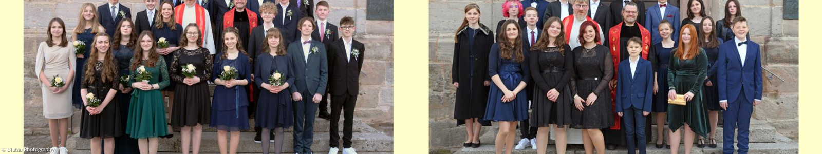 Zum ersten Mal seit Beginn der Corona-Pandemie vor zwei Jahren konnten die Konfirmationen der Kirchengemeinde Cadolzburg wieder an den gewohnten Terminen stattfinden: dem Sonntag vor Palmsonntag (Sprengel Wachendorf) und dem Palmsonntag (Sprengel Cadolzburg). 21 bzw. 18 Konfirmandinnen und Konfirmanden konfirmierten in den beiden Festgottesdiensten mit Diakon Dünisch und Pfarrer Miertschischk sowie Karin Heizmann bzw. Michael Bauer an der Orgel. Der Posaunenchor spielte angesichts der zu diesem Zeitpunkt noch ziemlich hohen Corona-Zahlen vorsichtshalber nur draußen vor den Gottesdiensten. Mit in den Gottesdiensten dabei war aber unser Chor "Carmina nova".
